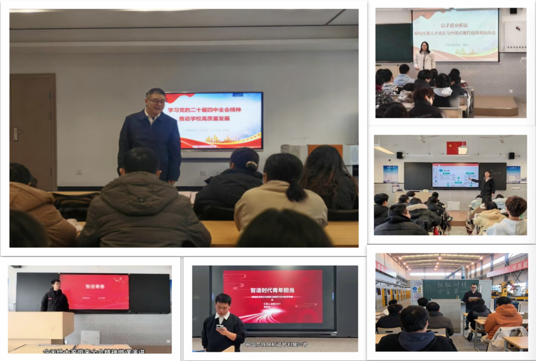面向全院学生,学院同步启动“学习四中全会精神,凝聚青年智慧力量,勇担制造强国使命”主题系列活动。各班级通过专题学习研讨,引导学生深刻理解国家战略;通过“微课”创作与“图说新篇”作品征集,鼓励学生运用专业视角和创新形式诠释全会精神。活动期间,学生投稿踊跃,作品展现了智能制造学子心系国家、勤学善思的昂扬风貌,实现了理论学习与专业认知、价值塑造的有机融合。